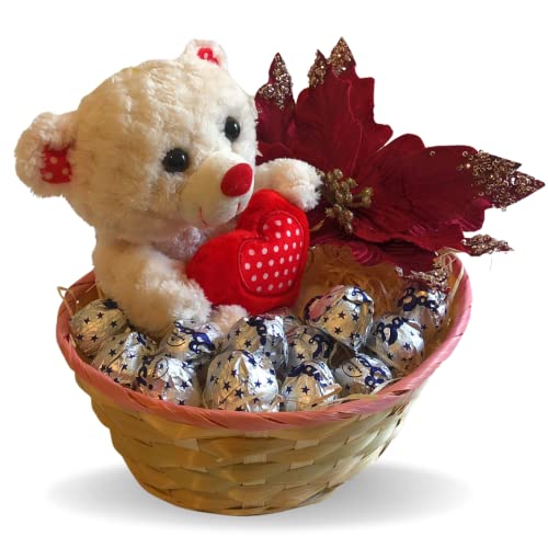 Kerstcadeau-idee met Perugina kussen: je ontvangt een mand in een geschenkdoos gevuld met Baci Perugina 175 g + teddybeer met rood hart + decoratieve kunstkerstster.