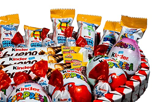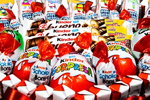 Inhoud: 50 kinderchocolade, 9 kinderen Happy Hippo, 3 kinderen goed, 7 eieren, 16 chocobons.