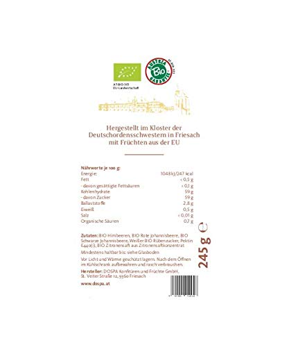 De handgemaakte biologische drievruchtenconfituur van DOSPA wordt volgens de traditionele formule in het klooster van de Duitse ordezusters in Friesach (Kärnten) met verse vruchten van de Kösterse fruitfabriek geproduceerd. De recepten van de Ordezusters zijn tot 250 jaar oud.
