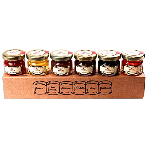 ELASUN Verpakking van 6 jam, goudbellen, gintonic, peper, tomaten, uien en rode wijn, 6 x 30 g