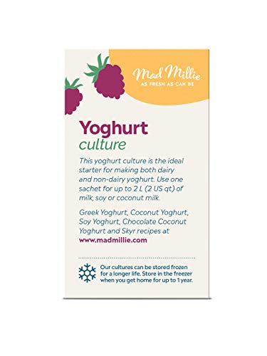 Deze zuivelvrije yoghurtcultuur van Mad Millie is een gevriesdroogde yoghurtcultuur die ideaal is voor het maken van yoghurt en yoghurtkaas.