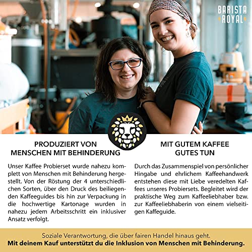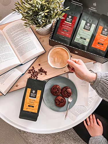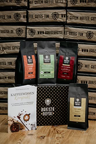 Hoogwaardige koffie: met dit pakket krijg je inzicht in verschillende soorten en landen – ideaal om de nieuwe favoriete koffie te ontdekken en de diversiteit van de aromawereld te leren kennen. De bonen worden met de hand geselecteerd en komen uit duurzame teelt. Barista Royal GmbH is biologisch gecertificeerd (DE-ÖKO-039)