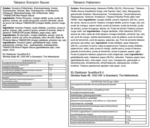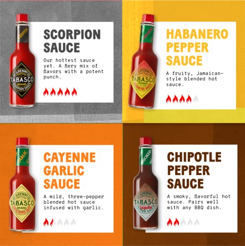 Specification: Geschenkset / geschenkdoos van het merk TABASCO® ‘BURNING FLAVOURS’ 7 x 148 ml glazen flessen met zeven zeer scherpe en…