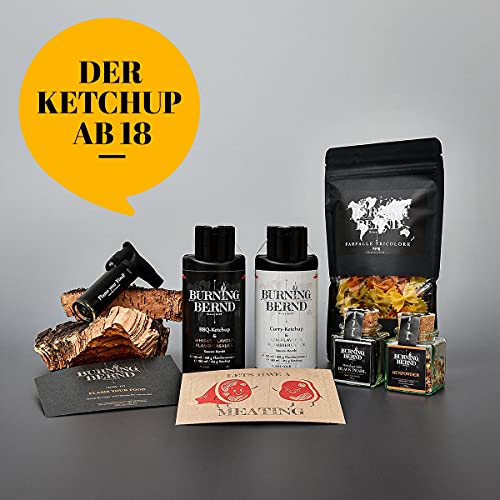 Het perfecte cadeau voor mannen en vrouwen. Wil je je favoriete persoon een groot plezier geven? Deze geschenkdoos bevat twee ketchups voor flamberen uit de Burning Bernd-serie en andere verrassingen. Voor elke grillliefhebber een vurig cadeau, of het nu voor een verjaardag, een barbecuefeest is of gewoon zo