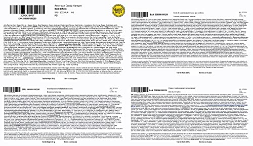 Jolly Rancher Snoep Mini 6 g – Druif, Kersen, Blauwe Framboos, Groene Appel en Watermeloen Snoep – Ingrediënten: Maïsstroop, Suiker, Zuurmiddel (appelzuur), Aroma, Kleurstoffen, Minerale Olie, Emulgator (SOJAlecithine). Voedingswaarden per 100 g (typische waarden): energiewaarde kJ 1627; energie kcal 389; totaal vet 0 g waarvan verzadigt 0 g; totale koolhydraten 94,4 g waarvan suiker 61,1 g; eiwit 0 g; zout 0,06 g | Nerds Cherry and Watermeloen 46,7 g* (dit product mogelijk in een productie waarbij eieren worden gebruikt voor de productie van andere producten) – Crunchy Candy met kers- en watermeloensmaak – ingrediënten: dextrose, suiker, zuur (appelzuur), maïssiroop, aroma, coatingsmiddel (E903), kleurstoffen (E133, E129**, E102). Voedingswaarden per 100 g (typische waarden): energiewaarde kJ 1674, calorische waarde kcal 400; vet 0 g waarvan verzadigt 0 g; koolhydraten 93 g waarvan suiker 93 g; eiwit 0 g; zout 0 g