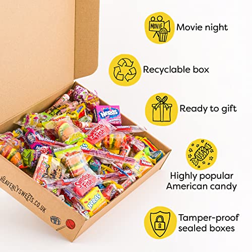 Heavenly Sweets Amerikaanse Snoep Partij Geschenkdoos 100+ Stuks! Klassieke Amerikaanse Snoepjes – Laffy-Taffy, Sour…