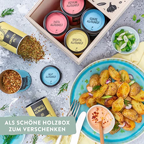 Ideaal geschenk ✅ Kookdagelijks gemakkelijker en veelzijdig genieten: Met 8 kruidenmixen in een hoogwaardige houten doos.